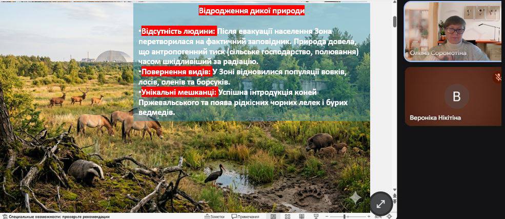 Сьогодні в нашому ліцеї пройшли тематичні «п’ятихвилинки пам’яті», присвячені 40-м роковинам аварії на Чорнобильській АЕС. Проте цього року ми вирішили поглянути на трагедію під іншим кутом — через призму екології. Минуло чотири десятиліття, і Чорнобиль перестав бути лише символом болю. Сьогодні це унікальний кейс для всього світу:відродження попри все. Як природа захоплює залишені людиною міста, перетворюючи зону відчуження на унікальний природний заповідник? Наші ліцеїсти під час дискусій шукали відповіді на складні питання: чи зможе природа повністю «загоїти» ці рани? Та що ми, як молоде покоління, можемо зробити для збереження довкілля вже зараз?
