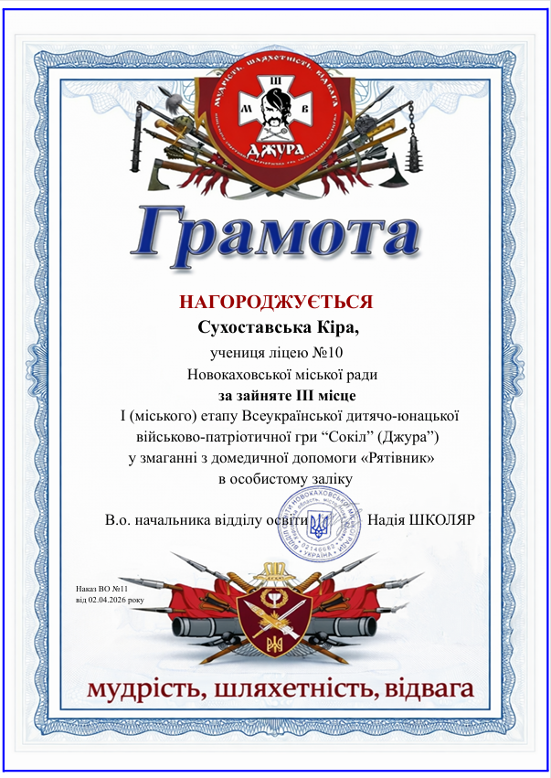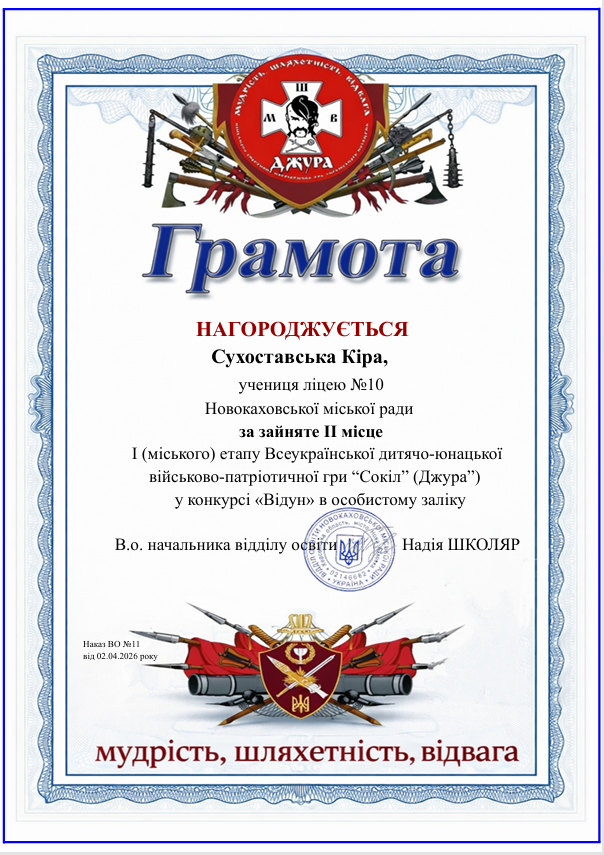 Вітаємо! Наш рій «Вільні козаки» виборов почесне III місце у всеукраїнській дитячо-юнацькій військово-патріотичній грі «Сокіл» («Джура»).