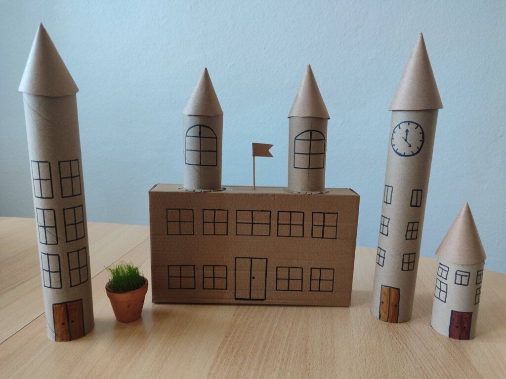 Живі рослини поруч із картонними будиночками стали важливим акцентом – адже комфортне житло неможливе без гармонії з природою. Проєкт «Re:Будинок» став справжньою школою життя: