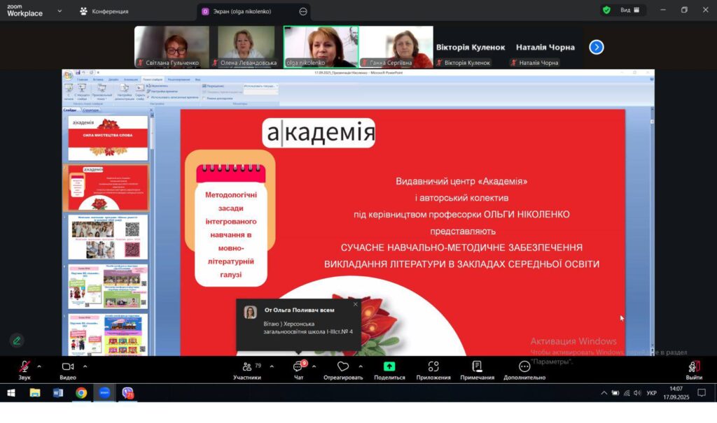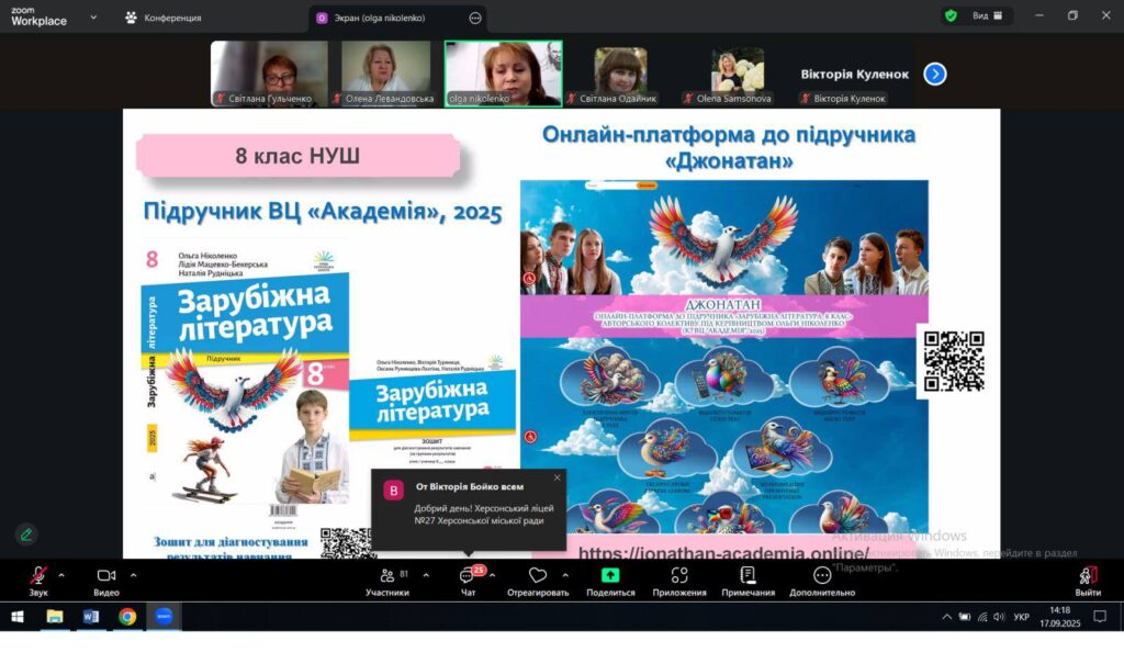 КЗВО «Херсонська академія неперервної освіти» Херсонської обласної ради провела дводенний онлайн-семінар на тему «Методологічні засади інтегрованого навчання в мовно-літературній освітній галузі». У заході взяли участь учителі зарубіжної літератури Ліцею.