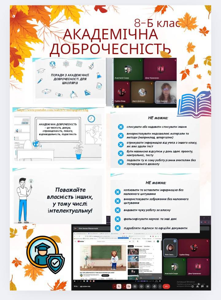 В нашому ліцеї пройшов тиждень, присвячений формуванню та зміцненню культури академічної доброчесності та загальної чесності серед учнів, вчителів та всього освітнього закладу. Особлива увага приділялася таким питанням, як плагіат, списування, хабарництво та інші порушення, а також вмінню правильно цитувати джерела й самостійно виконувати завдання.