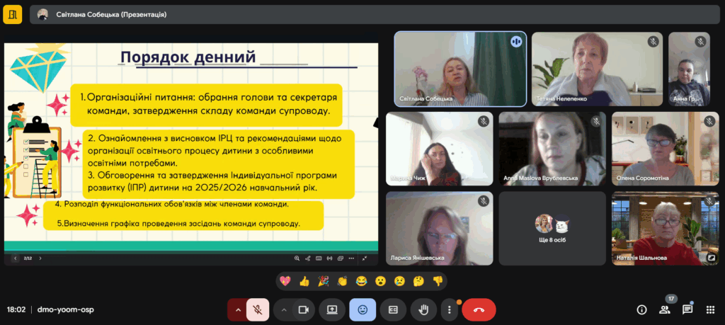 У роботі команди взяла участь фахівець Інклюзивно-ресурсного центру Сібарова О.В., яка висловила готовність у подальшому консультувати та допомагати у разі потреби.