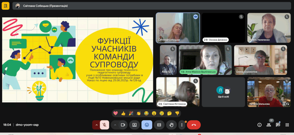 16.09.2025 р. у ліцеї відбулося засідання команд супроводу дітей з особливими освітніми потребами. Вчителі, асистенти учителя та батьки обговорили важливі питання організації освітнього процесу й узгодили подальші кроки для створення комфортних умов навчання.